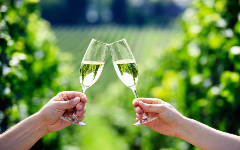 Sparkling wines can be made from nearly any grape type, and contain lots of bubbles to give them that fizziness. Prosecco is one of the most popular types of sparkling wines as it’s cheaper than champagne and it has a light, fruity flavour. It pairs beautifully with everything from finger foods to indulgent desserts, but it is also a mixer in many of Italy’s most iconic cocktails (Bellini is one of them).