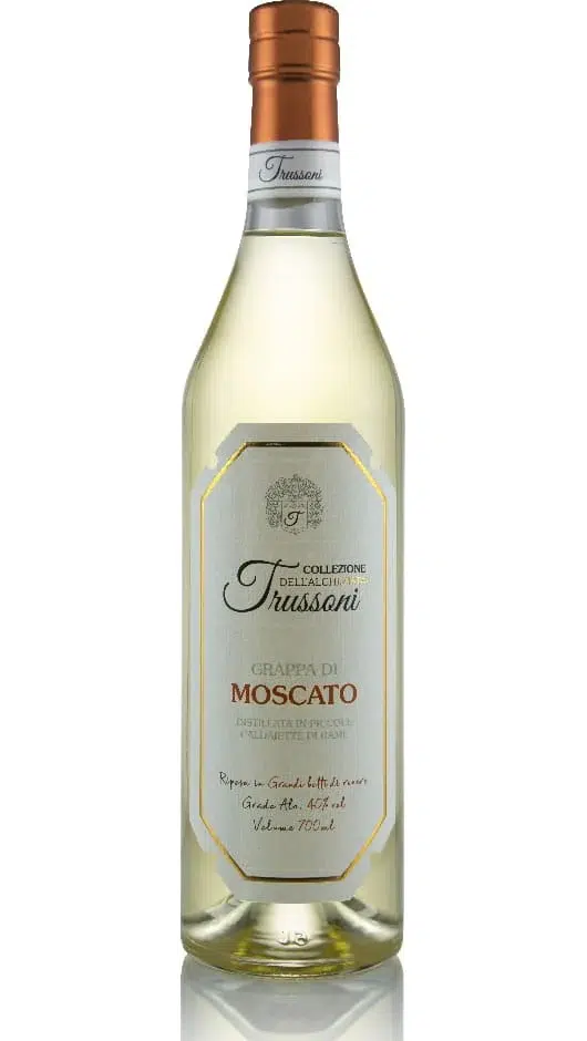 Distilleria Trussoni Grappa di Moscato Gialla is an aromatic, fruit-driven Italian spirit from Piedmont, known for its soft texture and intense floral notes derived from Moscato (Muscat) grapes. It is typically produced in an artisanal style to preserve the delicate varietal characteristics of the grape.