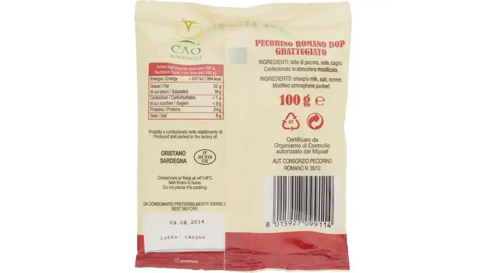 Grated Italian full fat hard vegetarian cheese made using pasteurised ewes’ milk. Carefully matured for a nutty, salty flavour. Packaged in a protective atmosphere.