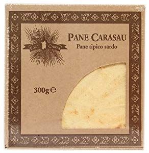 Pane carasau “toasted bread” is a traditional flatbread from Sardinia. It is thin and crisp, usually in the form of a dish half a meter wide. It is made by taking baked flat bread (made of durum wheat flour, salt, yeast, and water), then separating it into two sheets which are baked again. The recipe is very ancient and was conceived for shepherds, who used to stay far from home for months at a time