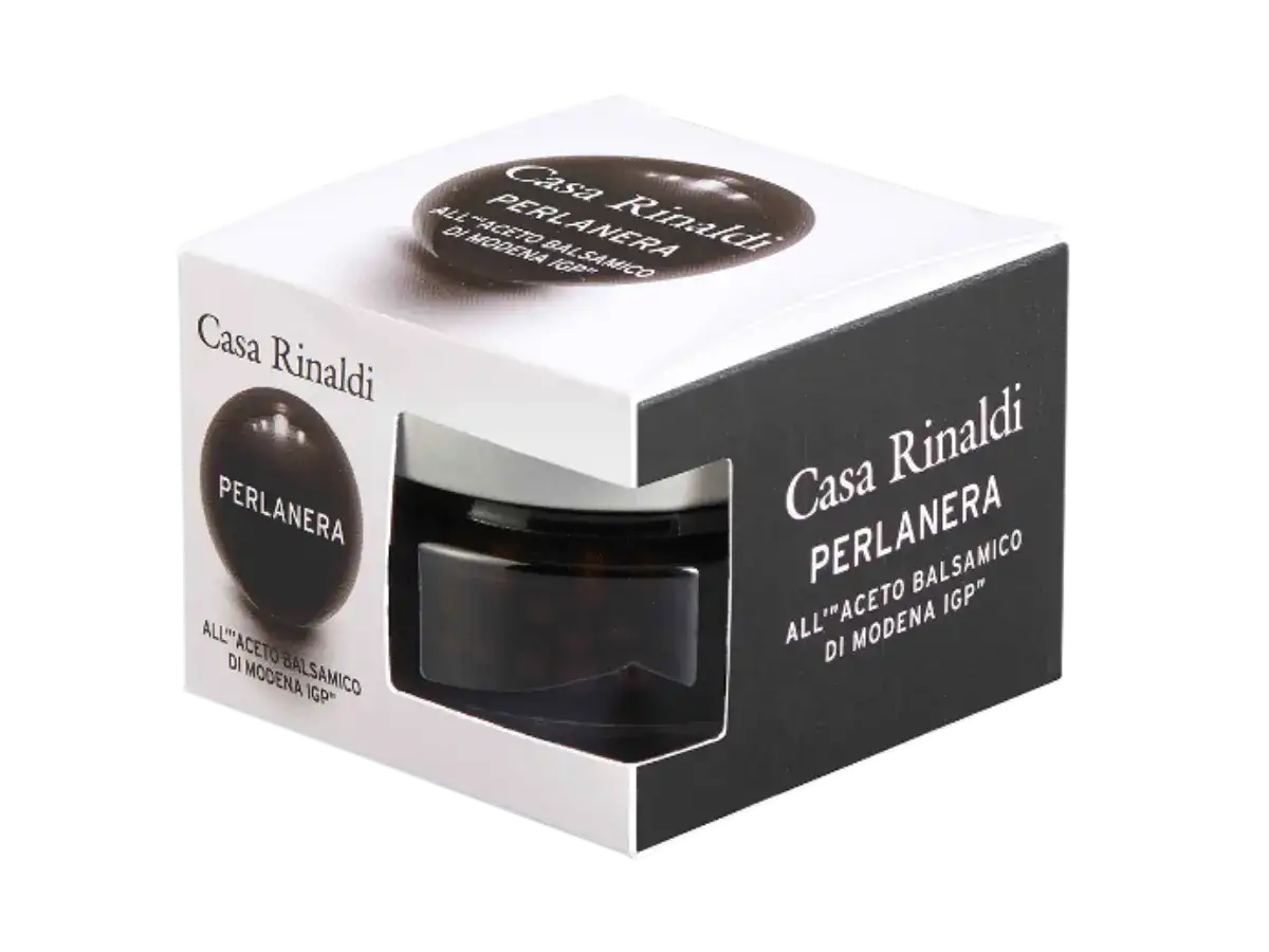 Black pearl is a unique product: vinegar is trapped in real pearls with an explosive flavour, capable of releasing all the taste of the balsamic vinegar of Modena.