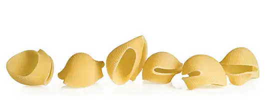 Garofalo Lumaconi are a delicacy to use in baked pasta recipes. This special shape gets filled with tasty ingredients whose flavour is enhanced by the consistency, roughness and taste of the bronze-drawn pasta.