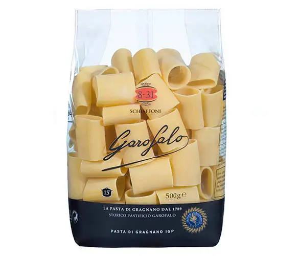 The traditional Neapolitan pasta shape of Garofalo Schiaffoni has generous dimensions, suitable for every filling but also good when served with succulent sauces.